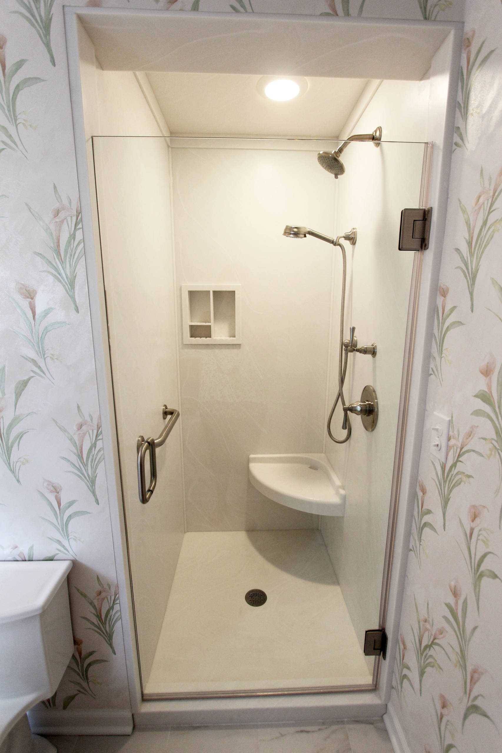 Corian Seamless Shower Bench Pan Corian Shower Walls Shower Remodel Shower Wall
